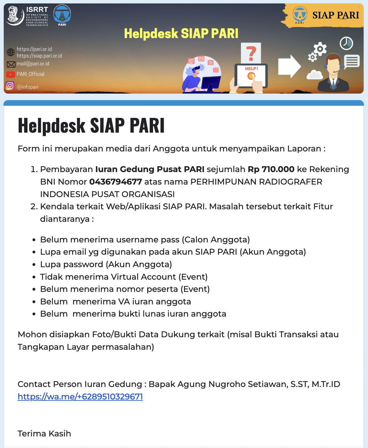 Edaran Pembayaran Iuran Wajib Anggota melalui Situs Terkini Persatuan Perawat Nasional Indonesia Kec. Suka Makmue |